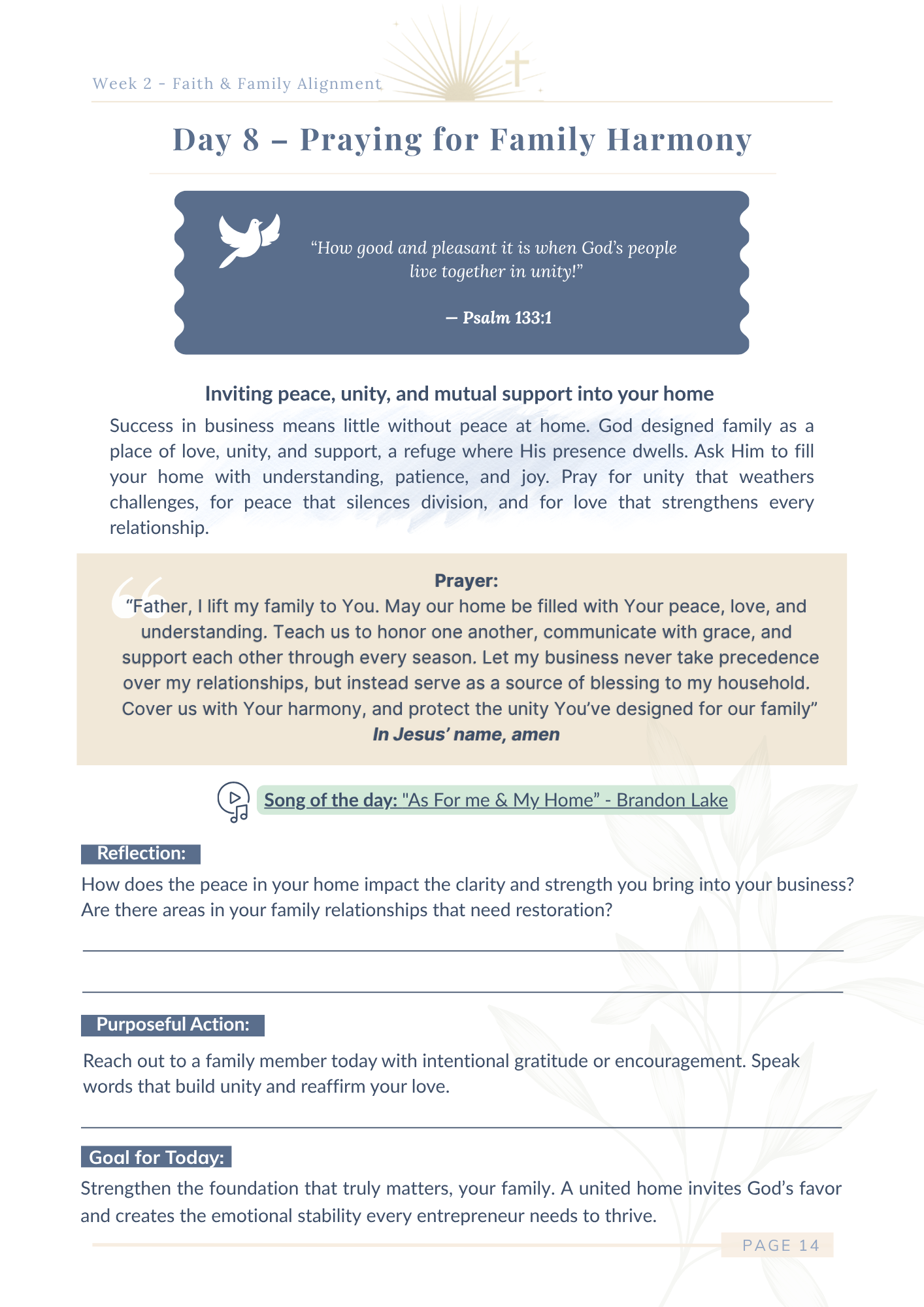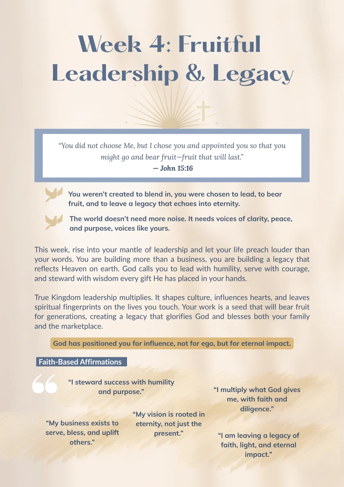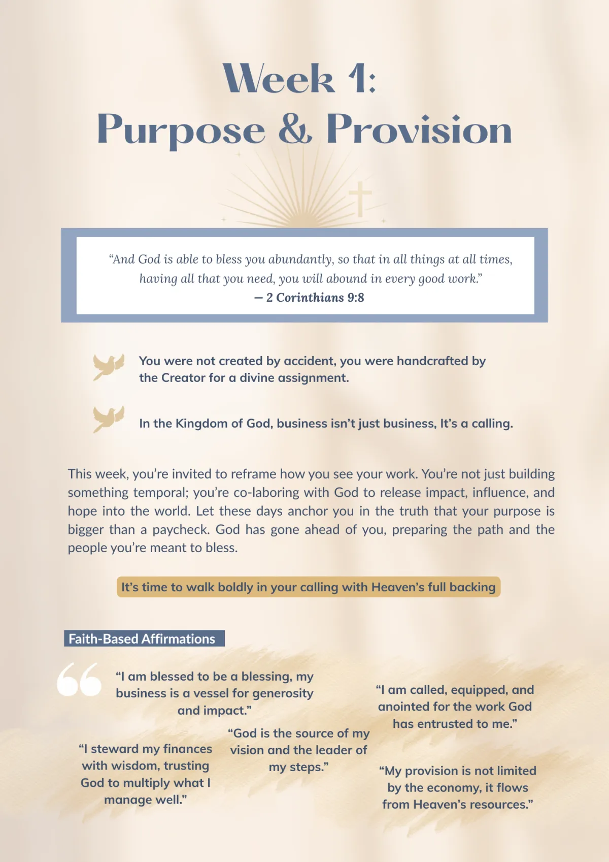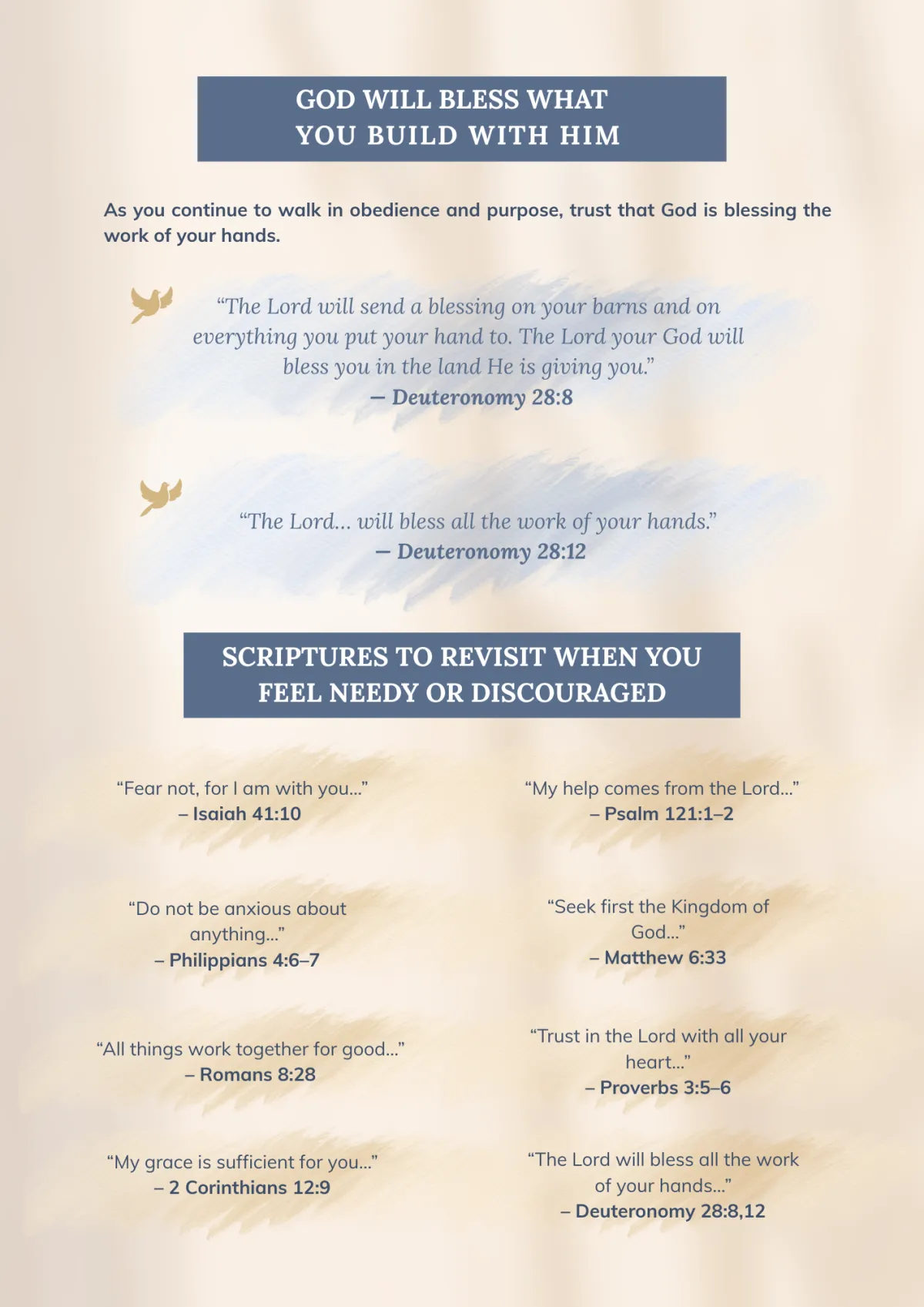 These 30 days were just the beginning. As you step forward, take the lessons, prayers, and rhythms you’ve built and carry them into your everyday life. Continue to give God the first moments of your day, the first thoughts of your plans, and the first place in your heart. Inside, you’ll find additional prayers, journaling prompts, and simple daily habits to help you stay connected and keep building this new rhythm with Him. Let this be your reminder, the journey doesn’t end when the pages close; it continues every morning you choose to walk with God in purpose and presence.